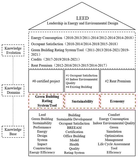 - As shown in Figure 8, the research hotspots of LEED mainly cover research on the sustainability of certified buildings, post-use evaluation, simulation and optimization, and the comparative study of GBRSs;