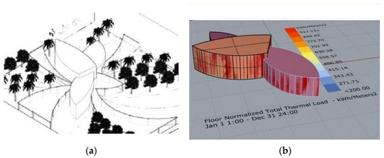 A popular software being used by architects nowadays is Rhino/Grasshopper. Grasshopper (graphical algorithm editor) is a plug-in for the 3D modeling program Rhinoceros, which enables designers to create parametric shapes and run simple to complicated modules without the need for scripting expertise. Grasshopper comes with many algorithmic computational launchers to execute different designs and simulations. For example, the Ladybug plug-in and Honeybee are used to execute the environmental simulation []. On the other hand, Daysim and Radiance are used to simulate form dynamics, daylight, and glare studies by combining various dimensions and proportions while taking seasonal pattern fluctuations into account [].