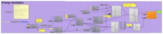 Rhinoceros is a commercial 3D software used widely in architecture, along with a plug-in called Grasshopper. Among other plug-ins, Grasshopper helps analyze several aspects of the building’s design and performance. Moreover, grasshopper simplifies design complexities that exceed conventional 3D modeling and can reference geometry objects in rhino such as points, curves, and surfaces. The online community of this software is quite large and active, therefore there is a possibility to update the Python language scripts in real time. Figure 26 shows that the grasshopper can be used to make calculations about the facade, plan, optimization process, energy use, or structural design. In this image, the complexity of the script is shown (for illustrative purpose only). The different steps are linked to each other until the final results of the simulation are obtained. While working with the tool, identifying the errors was visible immediately, enabling fast modifications to the script.