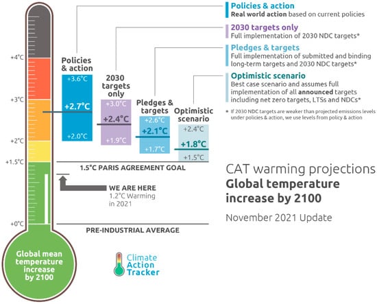 Figure 1). In the most optimistic scenario, i.e., if all the announced net-zero commitments are implemented, an end-of-century average warming equal to 1.8 °C is expected, which is still not compliant with the 1.5 °C target. Much more needs to be done.