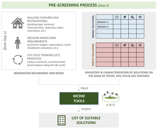 Given the above boundaries, the pre-screening of alternative retrofitting solutions for a given building may be carried out through a two-phase process as shown in