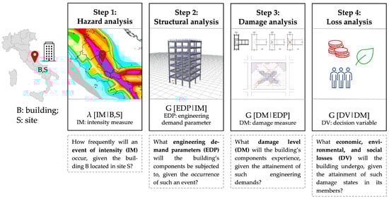 26], developed by the Pacific Earthquake Engineering Research (PEER) Center, which is a fully probabilistic approach to estimate earthquake-induced damage and corresponding losses depending on the site-specific seismic hazard and on the building-specific structural response. As illustrated in