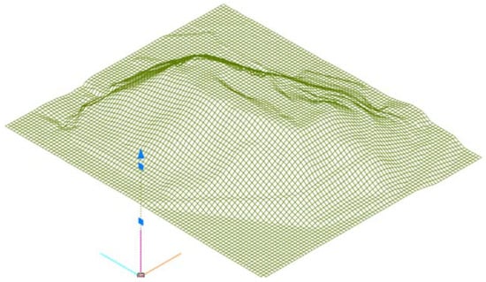 The generated geodetic model point cloud was very dense and not suitable for 3D modelling. It was necessary to prepare simplifications of the geodetic data, as follows: for slopes and pedestrian pathways, the surface point density must be no less than 0.5 m, and the construction surface density must be no less than 0.2 m. Furthermore, it was very important to know where the construction edge ends and the soil starts; therefore, the contact points of different objects also were included into the geodetic surface model. According to accepted simplifications of the geodetic data, a three-dimensional surface of Gediminas Hill was created (Figure 2).