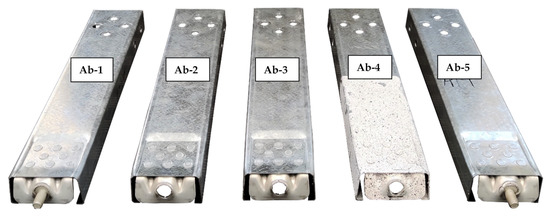 The tested specimens are shown in ascending order from the left in Figure 15. During the removal of the test tool, the M12 bolt was removed without damaging the specimens Ab-2, Ab-3 and Ab-4.