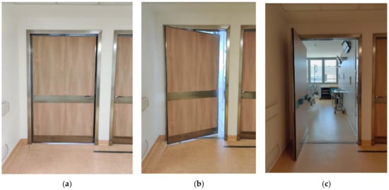 The condition with the door half-open has been considered since this is the most used condition in hospital wards as it allows healthcare staff to maintain an auditory and, in some cases, visual contact with patients.