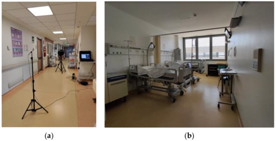 Careggi General Hospital of Firenze during measurements: (a) on the left side the corridor and (b) on the right side the bedroom.