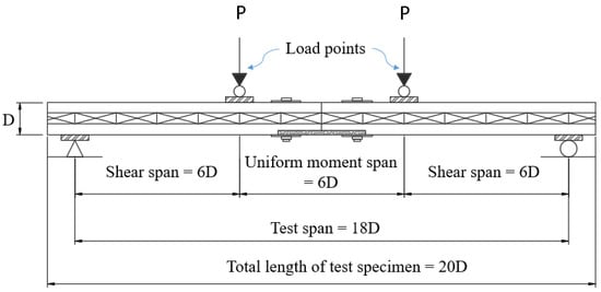 where θsupport is the support rotation in radian, δLoad point is the displacement of specimen at loading point in millimeters and 6D represents the shear span length in millimeters, as shown in Figure 3.