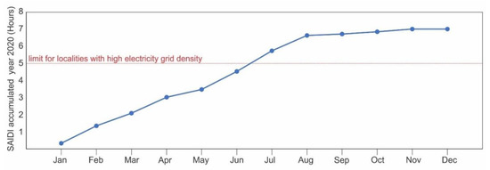 Monthly SAIDI accumulated during 2020 for the study location (author’s own preparation from [25]).