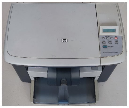 The fourth step (Step 4) is to collect cross-sectional images. The cross-sections of the samples were scanned using a flatbed scanner (Hewlett-Packard LaserJet M1005, Figure 5) with a resolution of 1200 dpi, and the target images with only black and white colors were obtained.