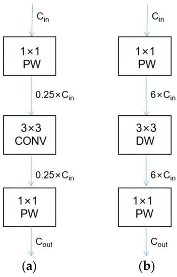 Comparison of MobileNet and ResNet structures: (a) ResNet; (b) MobileNetv2.