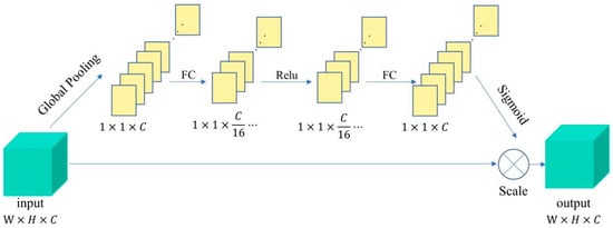 The main idea of an attention mechanism is to enhance useful information and suppress useless or minor information. This paper introduces an attention mechanism to the Mobilev2-SSD model, applying the SENet model to introduce attention between channels. Figure 7 shows the SE block structure.