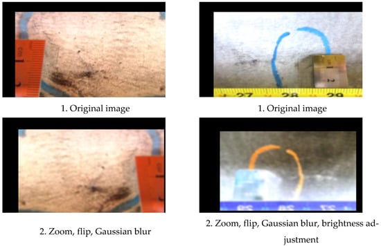In this step of our work, each image in the dataset was randomly selected for data enhancement by four of the above methods. One or more of the above methods was randomly selected to expand the data volume. Figure 11 presents details of the data enhancement effects.
