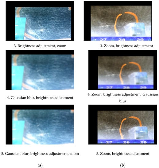 Image enhancement example of two images: (a) Random Image Enhancement Combination 1; (b) Random Image Enhancement Combination 2.