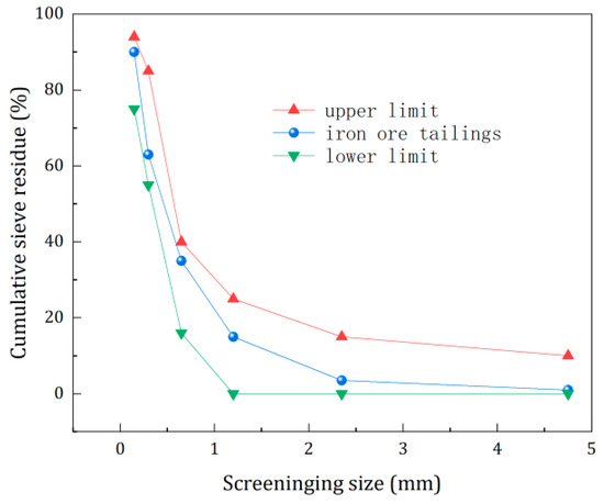 The grain gradation curve of the iron ore tailings is shown in Figure 1.