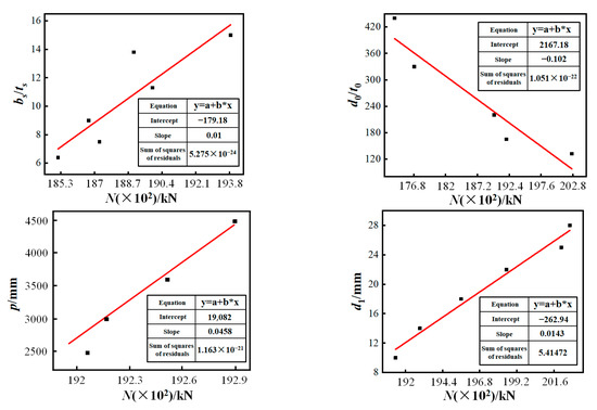 The core concrete was modeled using an enhanced uniaxial compressive stress–strain relationship; the restraint on the concrete within it can be increased as the steel pipe is limited by the lateral deformation of the spiral ribs. Corrections were made to the strain ε0 corresponding to the peak concrete stress and the parameter β0 for the descending section of the curve. The modulus of elasticity is calculated using the equation . The Poisson’s ratio is taken as 0.2: