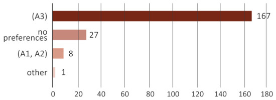 As was expected, hand-sanitizer dispensers (A) were the most widespread devices. The field surveys allowed defining three different sub-categories depending on the features, organization, and functioning of the dispensing system, as these characteristics can play a relevant role in influencing the users’ perception of these measures. Simple dispensers activated by pushing and not integrated into a specific structure or system (A1) represent the first of them. The second sub-category includes the hand-sanitizer dispensers activated by pushing but positioned in an ad hoc structure or system (A2). The third one consists of touchless hand sanitizers integrated into an ad hoc structure or system [A3].
