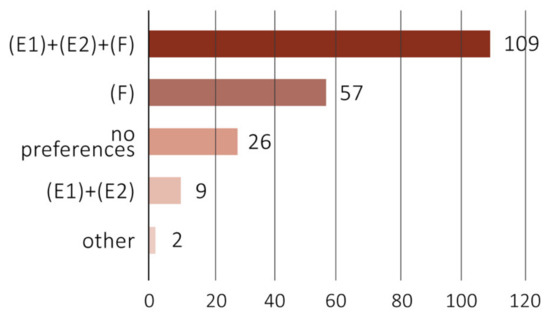 On the contrary, wayfinding through vertical signage (E) was largely implemented. It was possible to distinguish two sub-categories according to the different messages the signage conveyed. The first one is represented by informative vertical signage (E1) providing general information about the maximum crowding allowed inside the facility or the necessity of wearing a mask before entering. The second sub-category includes vertical signage with spatial information (E2), such as social distancing instructions, circulation routes definition, or the identification of the entrance and exit.