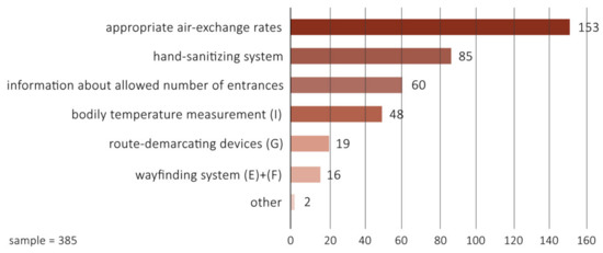 In these circumstances, mitigation and prevention strategies are only successful if users are committed to follow health protocols [24]. Therefore, research on implementing anti-COVID-19 safety measures would also benefit from the users’ feedback to assess and improve the effectiveness of the implemented measures [19,25]. Previous studies already adopted this approach. For example, Stirapongsasuti and colleagues [26] focused on improving hand hygiene habits in private organizations, developing hand-sanitizer systems that respond to the user’s behavior. Another research investigated the attitudes of users towards the thermoscanner as a large-scale, rapid measurement method of people’s temperatures, as fever could be one of the early symptoms of COVID-19 infection [27]. However, limited information is available about individuals’ confidence in different strategies [19] all together.