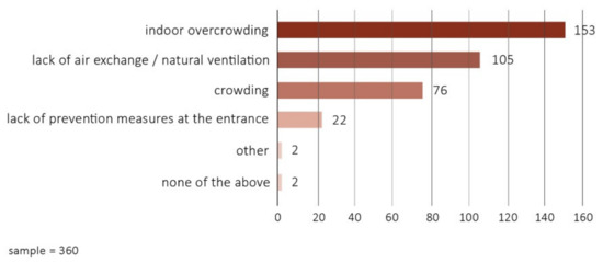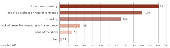 Therefore, the research focused on how users perceived, on the one hand, the risks deriving from the virus in indoor environments and, on the other, the related prevention measures to understand how they influence people’s behavior [28].