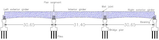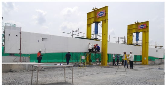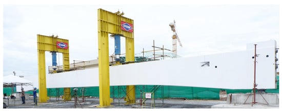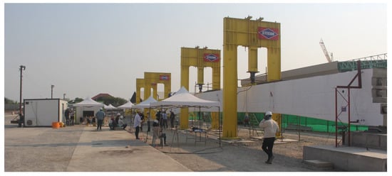 - Sirisonthi, A.; Suparp, S.; Joyklad, P.; Hussain, Q.; Julphunthong, P. Experimental Study of the Load-Deformation Behaviour of the Precast Post-Tensioned Continuous Girder for Straddle Monorail: Full-Scale Load Test under Service and Ultimate Loading Conditions. Case Stud. Constr. Mater. 2021, 15, e00666. [Google Scholar] [CrossRef]