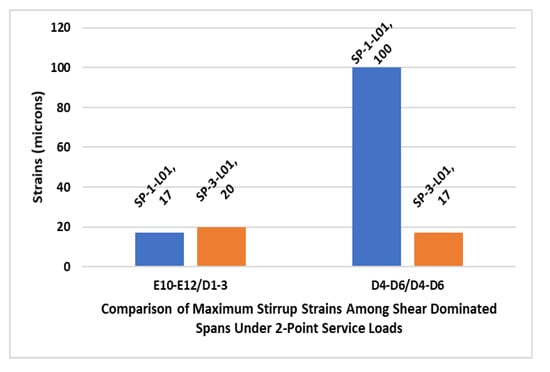 7.4. Comparison of Stirrup Strain