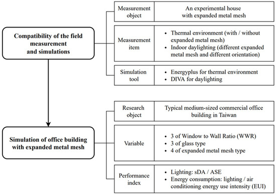 This research is divided into two parts: the first is the field measurement and simulation software compatibility, followed by office building lighting and energy consumption simulation (Figure 1).