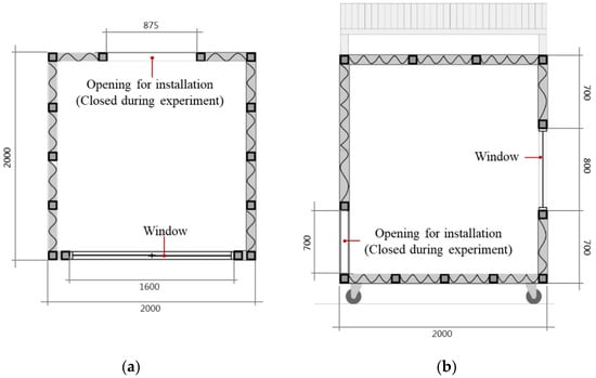 Size of experimental house (unit: mm). (a) Plan; (b) Section.