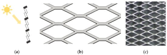 Owada et al. [19] explored the influence of expanded metal mesh with different mesh sizes, as well as two installation methods, upward and downward, on shading performance. The results showed that the installation method clearly has different effects on solar shading. Research on the relationship between the perforated ratio (horizontal projection), mesh size of the expanded metal mesh, and shading performance show that compared with general perforated materials, expanded metal mesh has a better shading effect due to its three-dimensional perforation form [20,21].