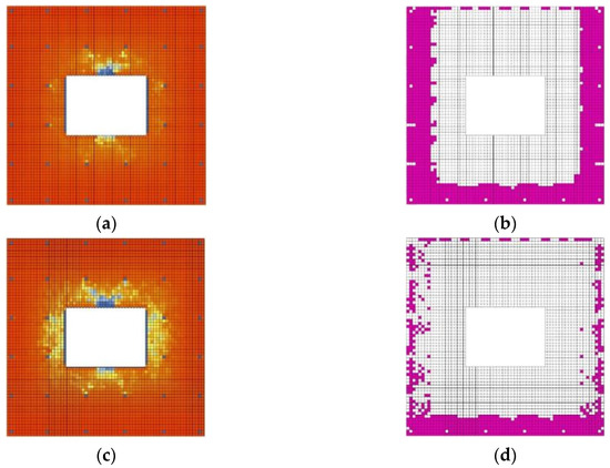 As shown in Table 10, in the 27 cases with the expanded metal mesh installed, the sDA and ASE decreased after the expanded metal mesh was installed compared to when expanded metal mesh was not installed. Figure 16 compares case 1 and case 2, showing that the east and west ASE of case 2 (with expanded metal mesh) is significantly improved.