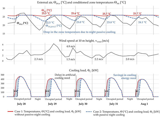 - Four cases were defined: two cases for each climate zone, with and without passive night cooling.