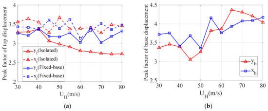 Peak factor of building displacement: (a) top displacement; (b) base displacement.