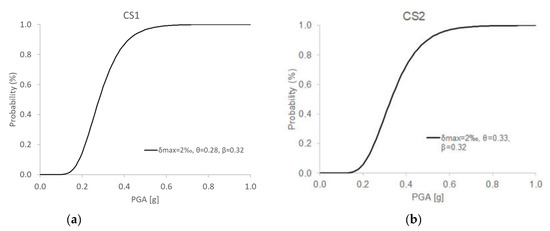 Fragility curves in PGA scale (a) CS1 and (b) CS2.