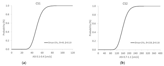 Fragility curves in ASI scale (a) CS1 and (b) CS2.