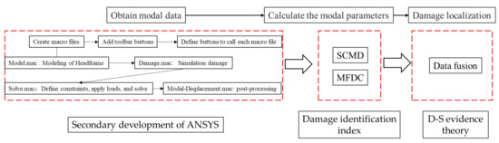 The damage localization method of one-stage fusion is as follows. Firstly, the damage location of headframe is determined by SCMD and MFDC. Then, the results of both are fused through D-S evidence matrix. Finally, the node damage probability is obtained, and the damage position of headframe is determined. The specific process is as follows: