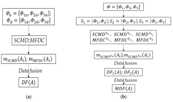- The results of the SCMD and MFDC are assigned probability, which determines the basic probability distribution function m(A); Then, the results of one-stage fusion (DF) are obtained by using the fusion rule.