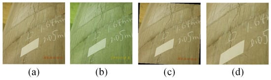 Data augmentation technology was used to improve the training effect by randomly transforming the raw data during the training process. The following augmentations were applied to the training sample: (1) color jitter augmentation (Figure 7b); (2) random horizontal flip (Figure 7c) and (3) random scaling by 10 percent (Figure 7d). Data augmentation was implemented during the training process; each epoch of the network was randomly transformed by data augmentation technology, which improved the robustness of the network. This meant that the network would have better performance.