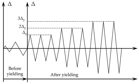Prior to the cyclic lateral loading, the designed axial load was applied on the top end of the wall specimen and remained constant during the test procedure. The lateral loading was controlled by the lateral displacement at the loading height of the specimen, and the loading protocol is shown in Figure 4. Before the wall yield, each displacement level was conducted only once, while three cycles were repeated at each displacement level that was beyond the yield displacement. The yielding of the walls was determined through the strains of the reinforcement bars or the steel shapes, which were monitored by the strain gauges. The wall was assumed to be yielded once the reinforcement bars or the steel shapes reached their yield strains (assumed to be 2000 ), whichever came first. The test procedure was stopped when the lateral resisting capacity dropped more than 50% of the peak lateral strength or the axial failure occurred, whichever was earlier. As presented in Figure 3, positive loading refers to pushing the wall at the top, while negative loading means pulling.