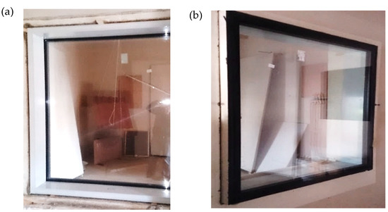 The tested façade element (test specimen) consisted of the rectangular frame (30 × 198 mm cross section) fabricated of aluminium profile and triple IGU (Figure 1).