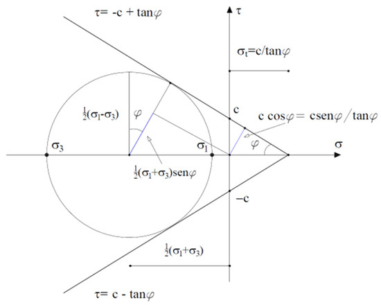 where c is the cohesion and is the internal friction angle (Figure 4); both are constants of the material to be determined experimentally.