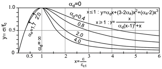 is the secant modulus corresponding to the maximum stress. The parameter affects the shape of the descendant branch of the curve (Figure 21) and must be calibrated through experimental tests.
