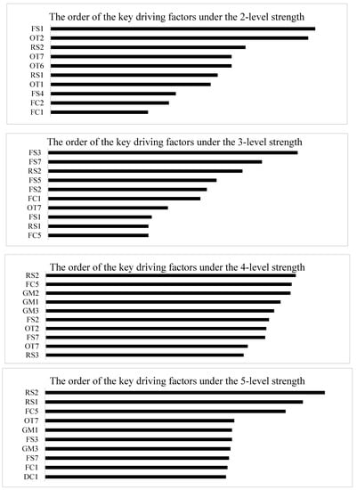 (3) When the company attempts to implement IC practices further, the factors of government are essential for achieving level 4 driving strength. Driven at this level, the company is genuinely implementing IC practices in a wait-and-see state of practice. The government plays a key role. The survey data and the IC status quo in China show that most IC practices depend on government policies. On the one hand, government policies force all companies to develop IC. On the other hand, they provide preferential subsidies and policy support to encourage companies to develop IC. The government’s policies offer guarantees for companies with specific motives.