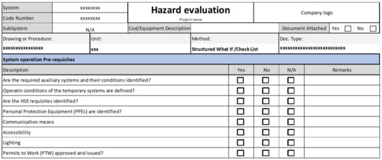 - American Institute of Chemical Engineers. Guidelines for Performing Effective Pre-Startup Safety Reviews; John Wiley & Sons, Inc.: New York, NY, USA, 2010. [Google Scholar] [CrossRef]