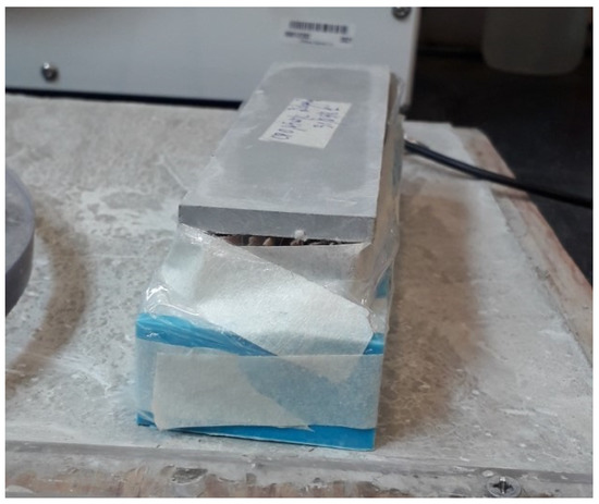 The specimens were positioned between two parallel plates equipped with heating and cooling systems [26] to provide steady-state and one-dimensional heat flux through the samples by setting plates at constant but different temperatures with an accuracy of °C [24]. The thermal conductivity was gauged given the sample thickness as the instrument fluctuated through a range of temperatures [27]. The thermal conductivity of a material in the heat flow meter method is calculated by applying Fourier’s law of heat conduction with absolute thermal conductivity accuracy of at a mean temperature of plates based on the following Equation (2) [28]:
