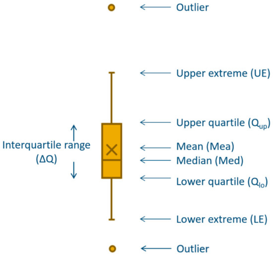 - Mcgill, R.; Tukey, J.W.; Larsen, W.A. Variations of Box Plots. Am. Stat. 1978, 32, 12–16. [Google Scholar]