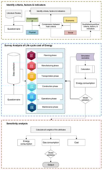 Detailed methodology, presented in Figure 1, was developed to attain the final goal of establishing and validating a project life-cycle assessment model of energy for heritage buildings. The research methodology is divided into two modules to evaluate the current condition of life-cycle cost of energy in heritage buildings, as follows: