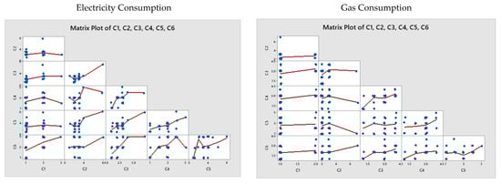 The matrix of Cronbach alpha analysis using Minitab® (electricity and gas consumption).