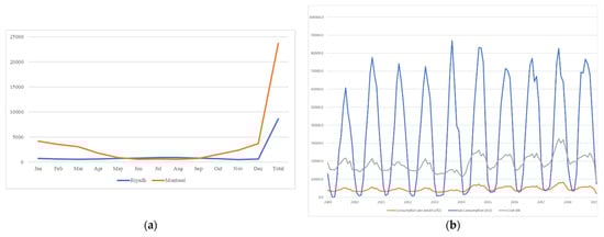 Chart for total energy consumption. (a) Chart for total energy consumption for Riyadh and Montreal in MWh. (b) Grey Nuns Building—total energy consumption.