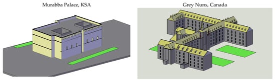 A sensitivity analysis measures the robustness of a model by observing the impact of varied weights of an attribute on the model output. The robustness of a model is evaluated based on the ability of the model to withstand significant changes in its input parameters. Since each sensitivity analysis simulation involves a specific change in the weight of an attribute, a sensitivity analysis can serve to identify relevant attributes and weights for a given model. In this study, attributes include the phases of planning, manufacturing, transportation, construction, operation, and maintenance. The two case studies that were analyzed are Murabba Palace, Saudi Arabia; and Grey Nuns Building, Canada. The weight of each attribute (project life-cycle phase) was increased by +15%, and the performance of the life-cycle assessment model was evaluated. For example, the weight of an attribute, , is increased by . Thus, its resulting weight, , will be . For each weight change, the weights of other attributes can be calculated from Equations (5) and (6), and the total weight of all attributes must equal 100%. Note that the number of simulations for each attribute must be equal.