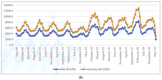 In addition, the authors Radhi et al. [] evaluated the impact of climate interactive © systems (CRFS) on cooling energy in fully glazed buildings. This research combined the computational fluid dynamics and the simulation of a building’s energy to determine boundary conditions, as well as to generate geometrical models based on a newly constructed multi-story building. According to Hygh et al. [], the energy load of a building can be calculated in a precise way by simulating building models. However, these models cannot be manipulated when the building is still in the primary stages of the design process. This is because, during the early stages, the availability of an assessment tool that is capable of providing feedback in response to varying the high-level design parameters is required. The authors then proposed a novel modeling strategy in order to determine the energy load of a building during the primary stages of the building design. They indicated that the utilization of standardized regression coefficients (SRCs) can serve as a useful indicator of how the heating and cooling loads are affected by each design variable.
