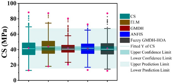 - Golafshani, E.M.; Behnood, A.; Arashpour, M. Predicting the compressive strength of normal and High-Performance Concretes using ANN and ANFIS hybridized with Grey Wolf Optimizer. Constr. Build. Mater. 2020, 232, 117266. [Google Scholar] [CrossRef]